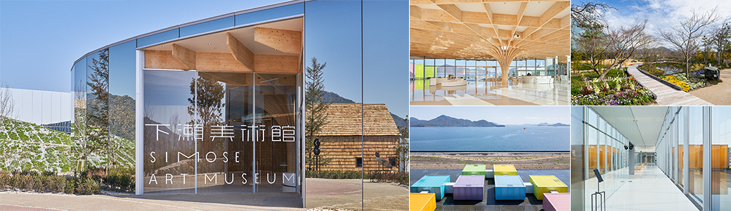 【Simose Art Museum 下瀨美術館(全球最美的美術館之一)】,位於廣島縣大竹市,是一座極具建築與展覽特色的當代藝術美術館。於2023年3月開幕。由普利茲克獎得主、著名建築師坂茂(Shigeru Ban)操刀,融合鏡面玻璃結構和「漂浮」型模組展廳,與瀨戶內海自然景觀相呼應。其建築特色有「漂浮貨櫃式展廳」:設有8間可移動彩色玻璃展室,以貨櫃式結構漂浮於水面,可隨展覽需求改變佈局。「鏡面玻璃牆」:主體建築採鏡面玻璃設計,將海景、天空、山嶺反射於建築表面,營造「建築即風景」的視覺幻境。「園林互動」:建築融入「埃米爾·加萊花園」,種植與加萊作品呼應的植物,增加藝術與自然的融合度。2024年獲選為世界七大「世界最美美術館」之一,由聯合國教科文組織頒發該獎項中的「Museums」類別。亦曾被旅遊、設計媒體盛讚為「漂浮於水上的藝術島嶼」、「全球最美美術館」。