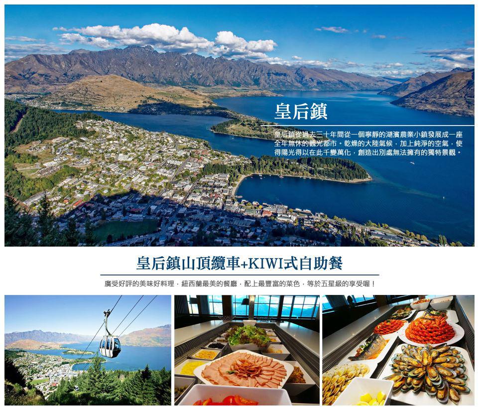 ◆用心規劃◆ 蜜月勝地、戶外活動天堂─皇后鎮(安排住宿兩晚):我們特別安排2晚住宿在此,細細感受湖畔小鎮風情,悠閒的在瓦卡蒂波湖畔,聆聽南半球的自然協奏曲!