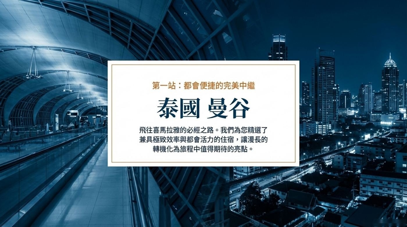 今日集合於桃園國際機場,搭乘豪華客機前往曼谷,準備前往最幸福的國度---不丹。
