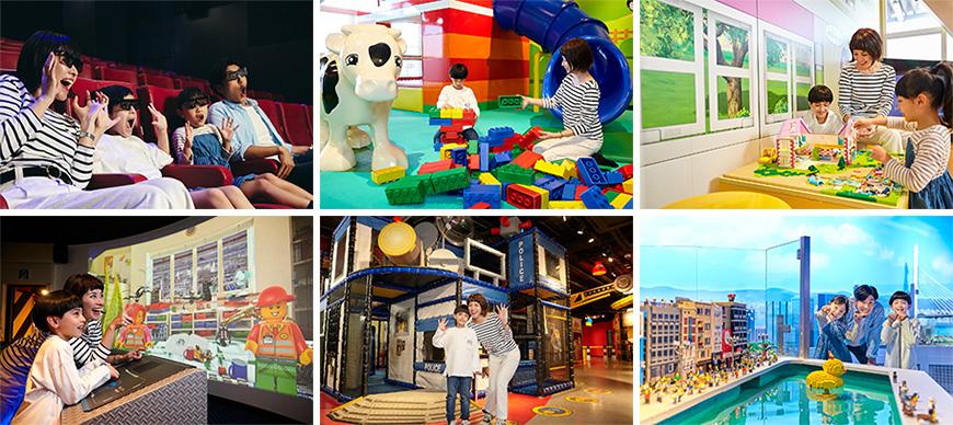 共有七大主題遊樂區,以及超過40種以上的設施,另外還有各項表演節目及活動,是一座以孩子為中心,讓全家大小都可以透過積木遊戲與玩樂,增進親子關係的戶外型兒童主題樂園,更是寓教於樂的歡樂天地。因為位在名古屋的原因,更利用22萬多塊樂高堆出高達2公尺的名古屋城。園區內還有全亞洲最大的樂高商店THE BIG SHOP,樂高迷絕對不能錯過!