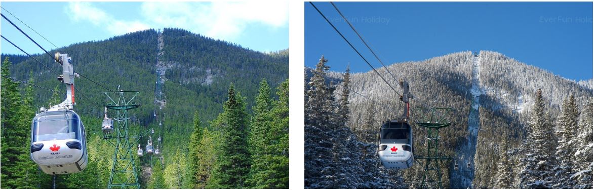 【硫磺山纜車】硫磺山為遊覽班夫市的必到首選名勝,攀登海拔2450公尺高的硫磺山山頂,透過窗戶隨著爬昇的纜車鳥瞰班夫美景,並在展望台上眺望令人屏息的風光可一覽全景。