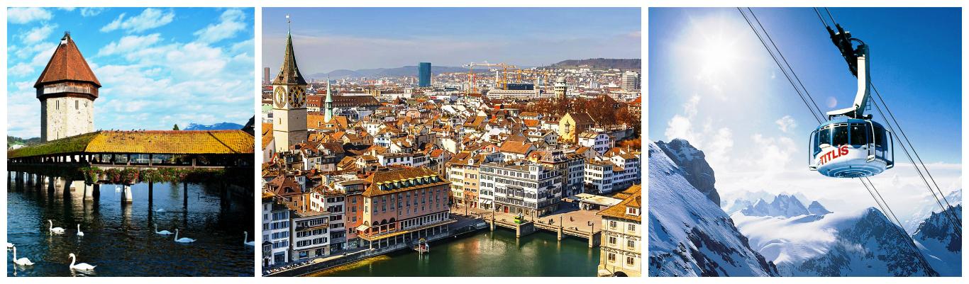 早上起程沿山區公路前往有世界花園之稱的瑞士,並往瑞士中部進發,展開遊覽大雪山的節目。旅遊車穿越崇山峻嶺前往英格堡山區,抵步後,轉乘旋轉登山纜車,登上海拔三千米高並全年積雪的「鐵力士峰」,坐四十五分鐘纜車到達大雪山頂,即往參觀冰洞,繼往賞雪台漫步,遊目四顧 , 群峰環列,冰川奇景,盡入眼簾;團友可於山頂餐廳享用午餐。遊罷雪山轉赴風景如畫的琉森市,觀賞雕刻在峭壁上的著名獅子紀念碑,它是表揚瑞士民族精忠勇敢和信義精神。團友也可到滿佈精品的古雅小街逛遊,選購地道特產朱古力及紀念品,並往著名的鐘錶店選擇瑞士名錶。